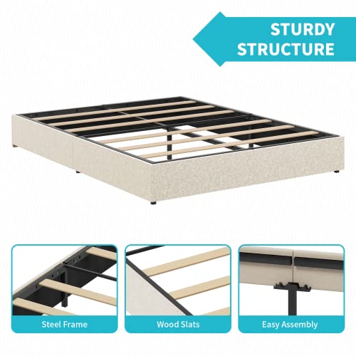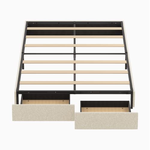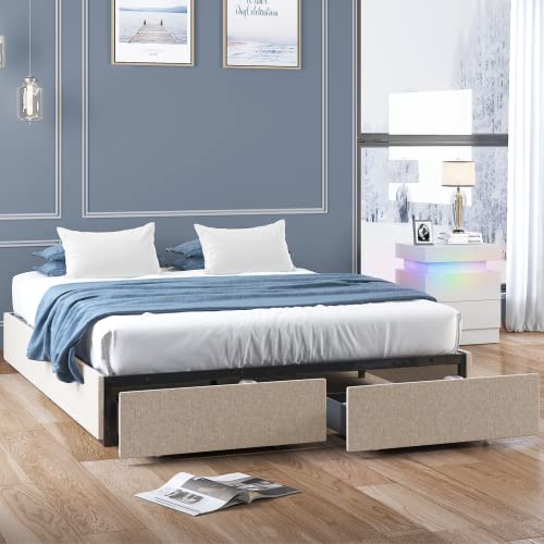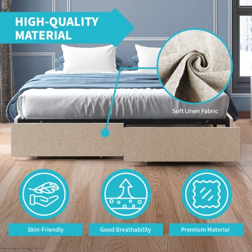 CECER California King Size Bed Frame with Storage Drawers, Linen Platform Bed Frame with Wood Slat Support, No Box Spring Needed, Easy Assembly, Under Bed Storage, Light Grey