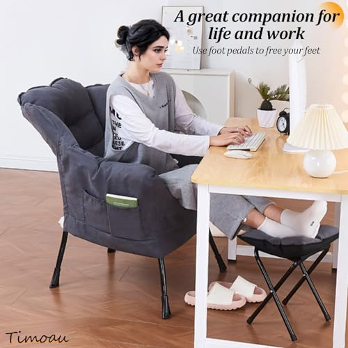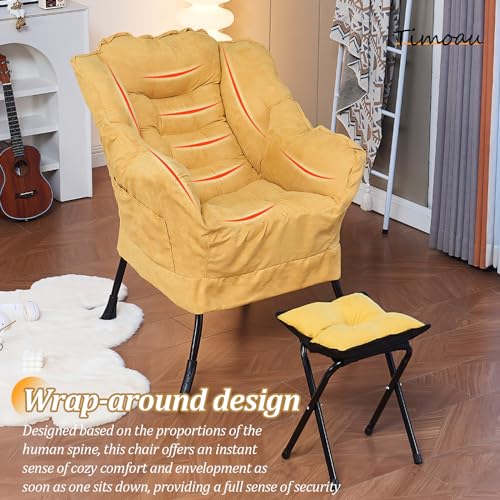 Lazy Chair with Ottoman, Modern Soft Reading Chair Accent Contemporary Lounge Leisure Sofa Chair with Armrests and a Side Pocket, Armchair with Stool for Bedroom, Living Room, Office, Red