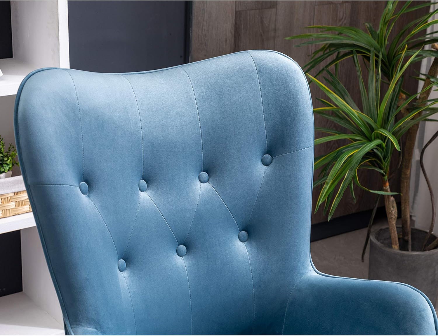 Doarnin Contemporary Silky Velvet Tufted Button Back Accent Chair, Blue