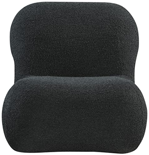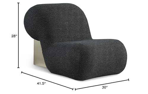 Meridian Furniture Quadra Collection Modern | Contemporary Boucle Fabric Upholstered Accent Chair with Brushed Gold Cube, Black