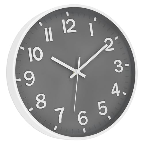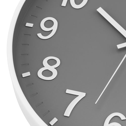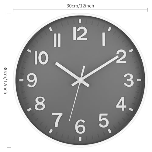 Lumuasky Wall Clock Modern 12 Inch Battery Operated Silent Non-Ticking Decorative Wall Clock for Living Room Bedroom Office Kitchen School Classroom Nursery Decor, 3D Numbers Easy to Read(White-Gray)
