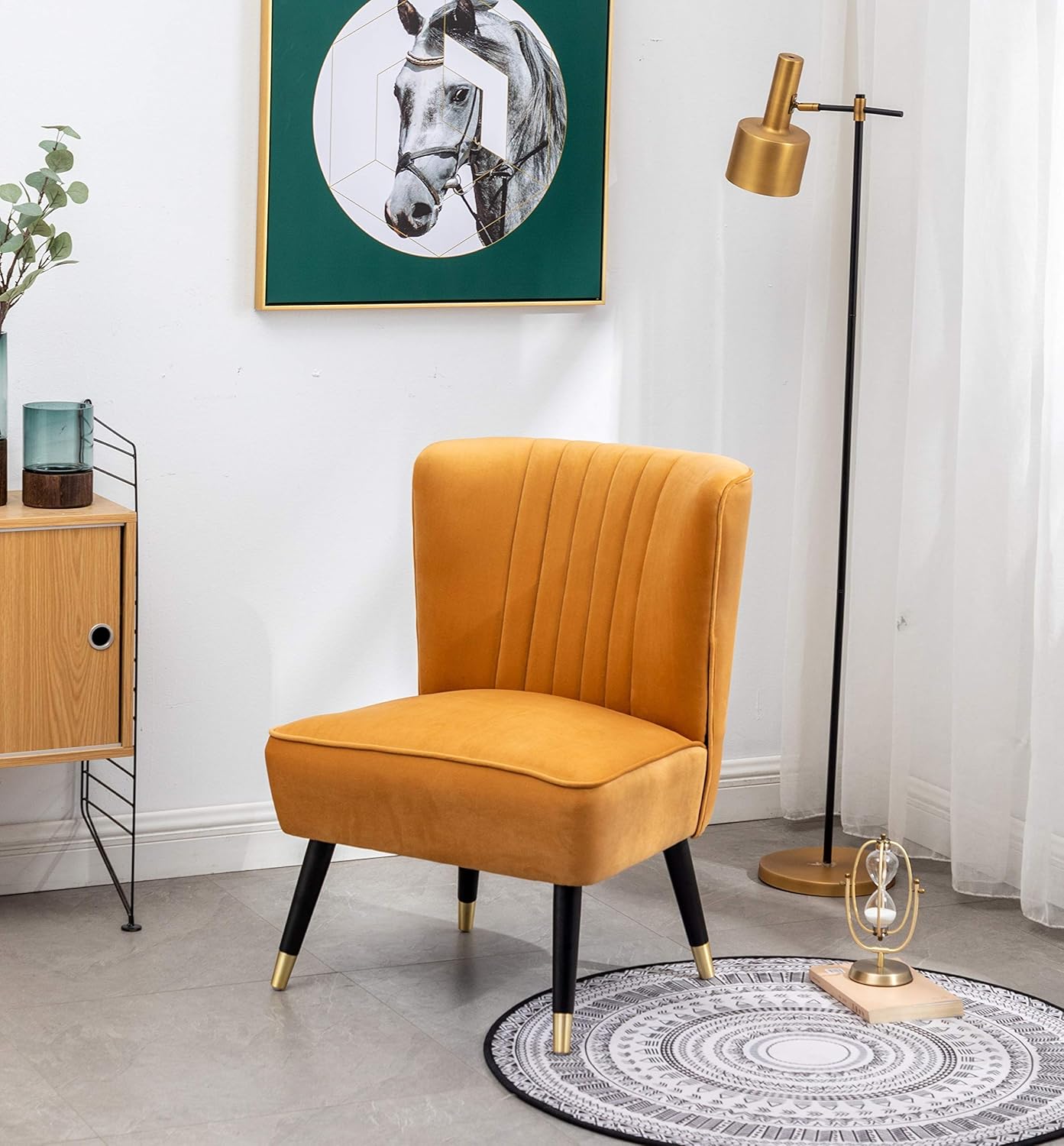 Elon Contemporary Velvet Upholstered Accent Chair, Gold