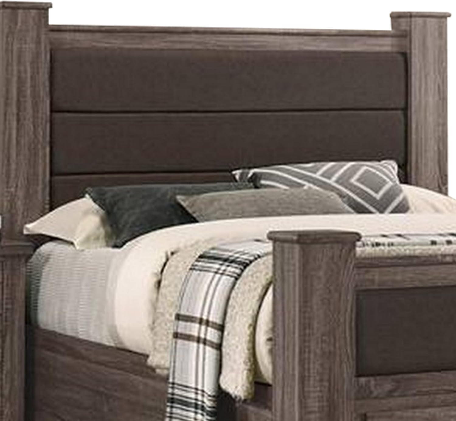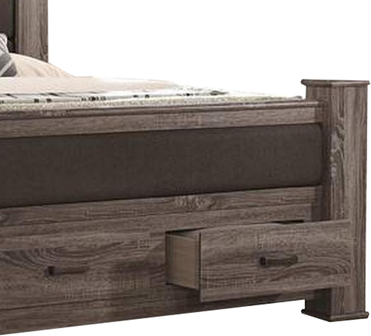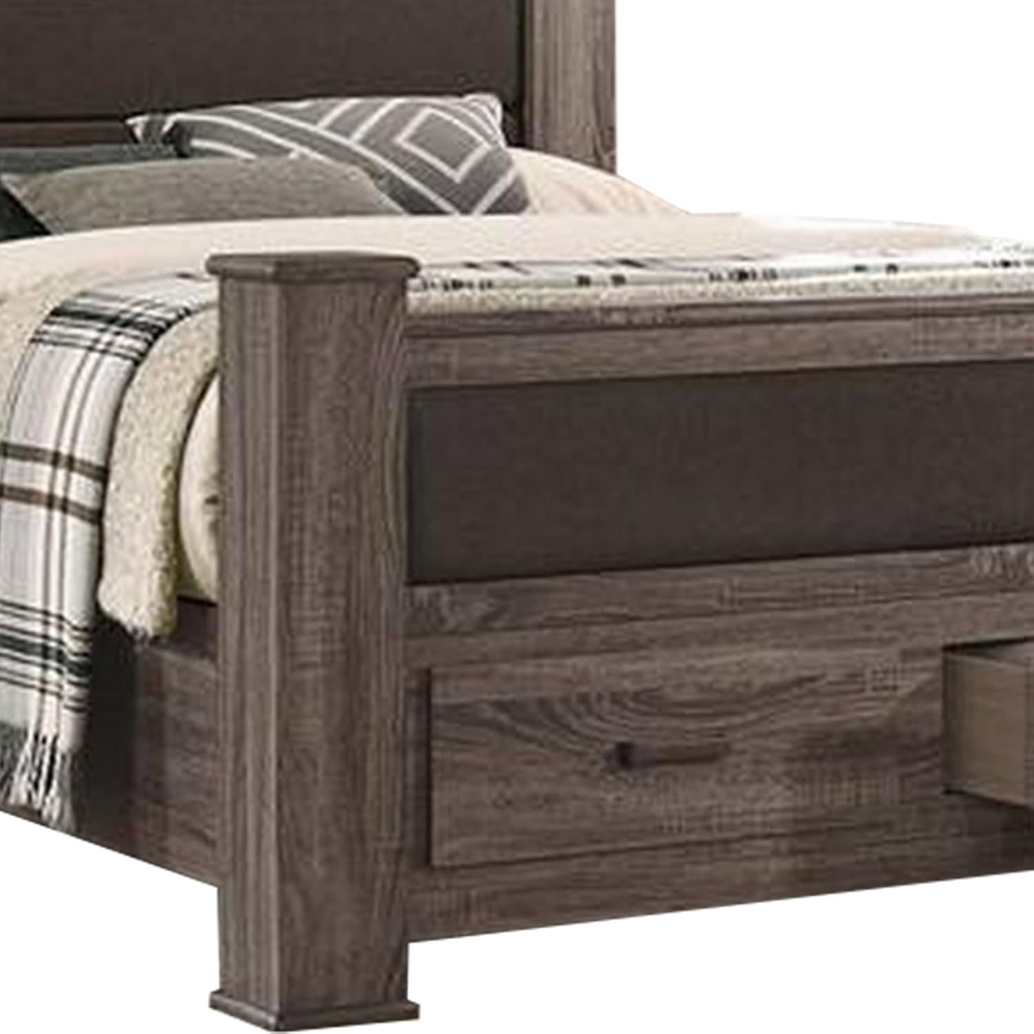 Benjara BM300199 Fort Wood Bed with 2 Drawers & Upholstered Panel Oak Gray - California King Size