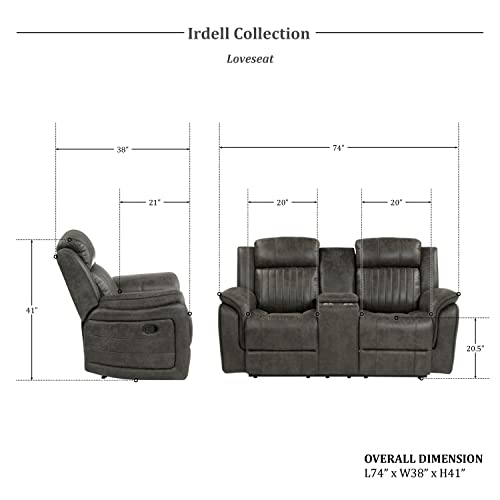 Lexicon Irdell 3-Piece Manual Reclining Living Room Set, Brownish Gray