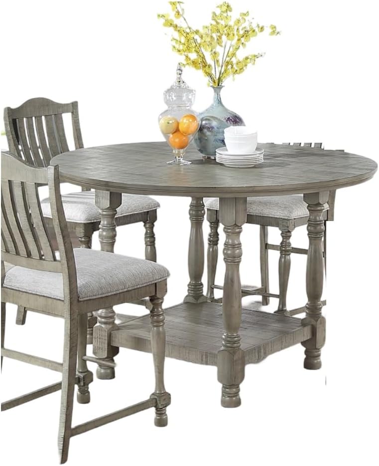 Light Grey Dining Table Round Dining Table 1pc Table Only Open Shelf Acacia Veneer Dining Room Furniture