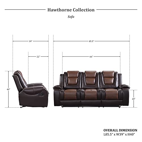 Lexicon Hawthorne 3-Piece Reclining Living Room Set, Two-Tone Brown
