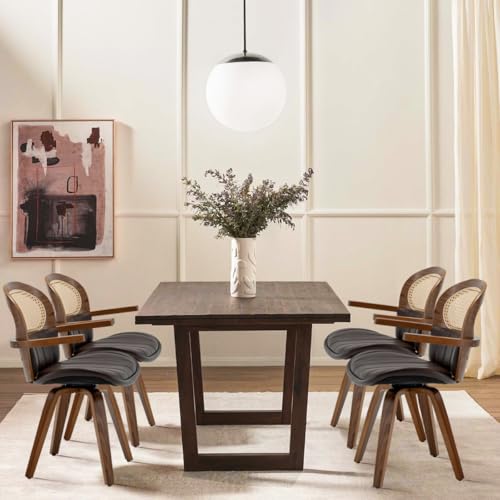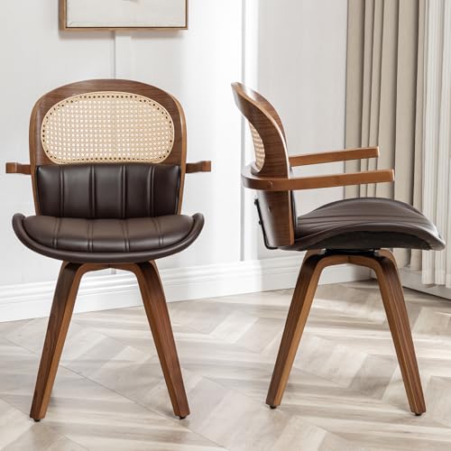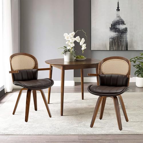 Leather Dining Chairs Set of 2,Rattan Dining Chairs,Swivel Dining Chairs with Arms and Wood Legs,Beige