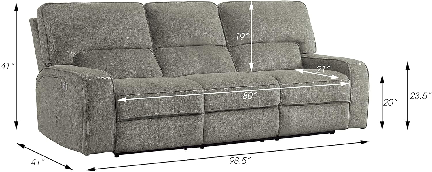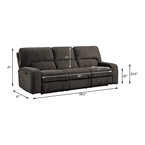 Lexicon Atherton 3-Piece Chenille Fabric Power Reclining Living Room Sofa Set, Mocha