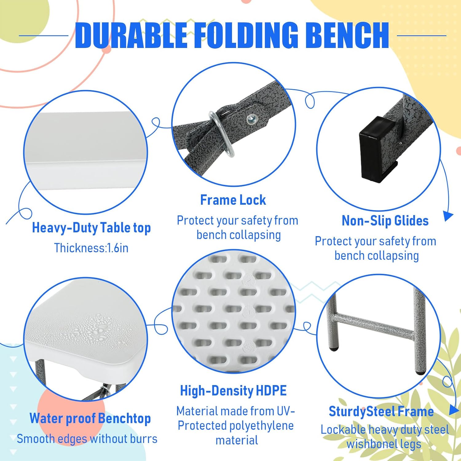 Soaoo 4 Pack 6ft Folding Bench Portable Foldable Bench Seat White Plastic Fold in Half Furniture Bench Seating with Carrying Handle for Indoor Outdoor Garden Camping Picnic Party Soccer Events