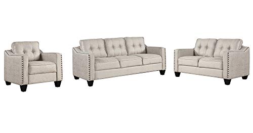 Knocbel Stylish 3-Piece Sofa Set Living Room Set with Tufted Cushions, Velvety Soft Linen Blend Fabric and Brass Nail Head Trip, Including 3-Seat Sofa, Loveseat and Accent Chair, Gray