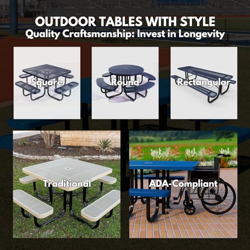 Coated Outdoor Furniture Heavy-Duty Portable Outdoor Picnic Table with Umbrella Hole, Expanded Metal Commercial-Grade Patio Dining Furniture Made in America (46" Square Top, Yellow)