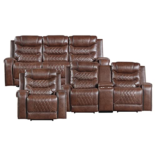 Lexicon Atherton 3-Piece Chenille Fabric Manual Reclining Living Room Sofa Set, Chocolate