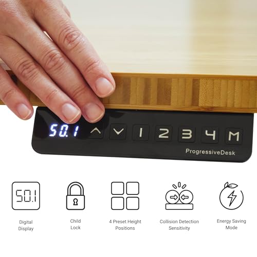 Progressive Desk L Shaped Height Adjustable Standing Desk 72" x 60" - Corner Computer Desk - Electric Stand Up Rising Workstation - Gray Frame, Ebony Oak Top