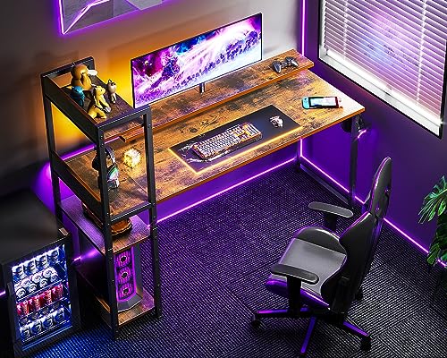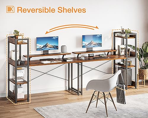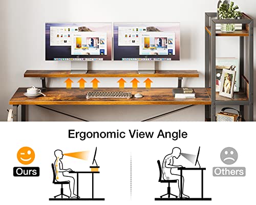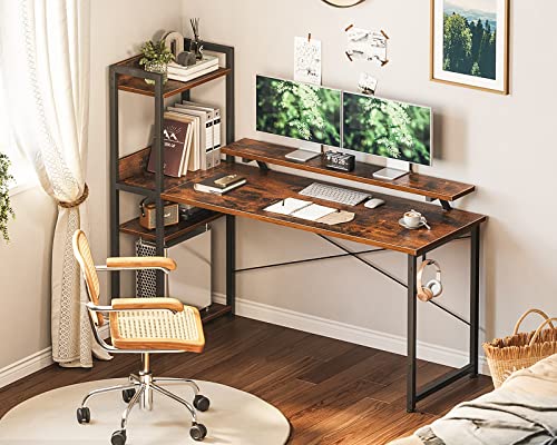 ODK Computer Desk with Storage Shelves and Monitor Stand, 55 Inch Gaming Desk with Bookshelf, Reversible Study Table for Home Office, Writing Desk, Vintage