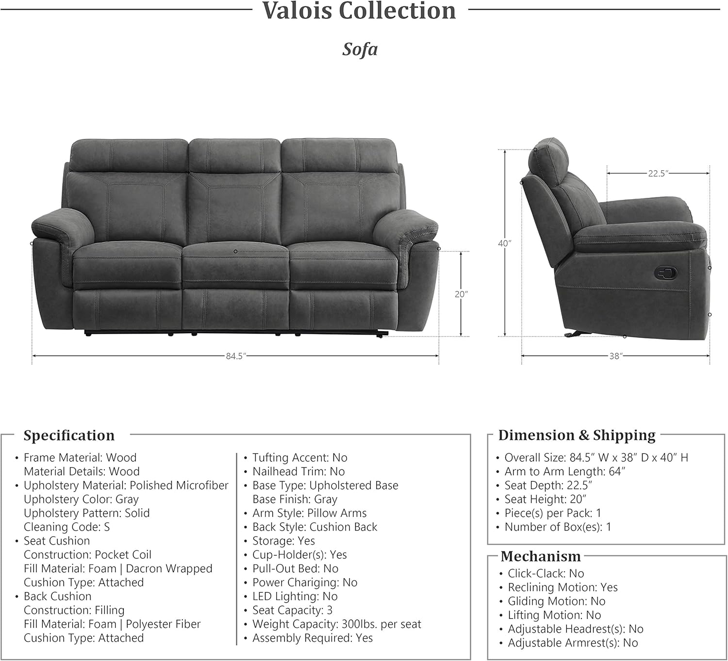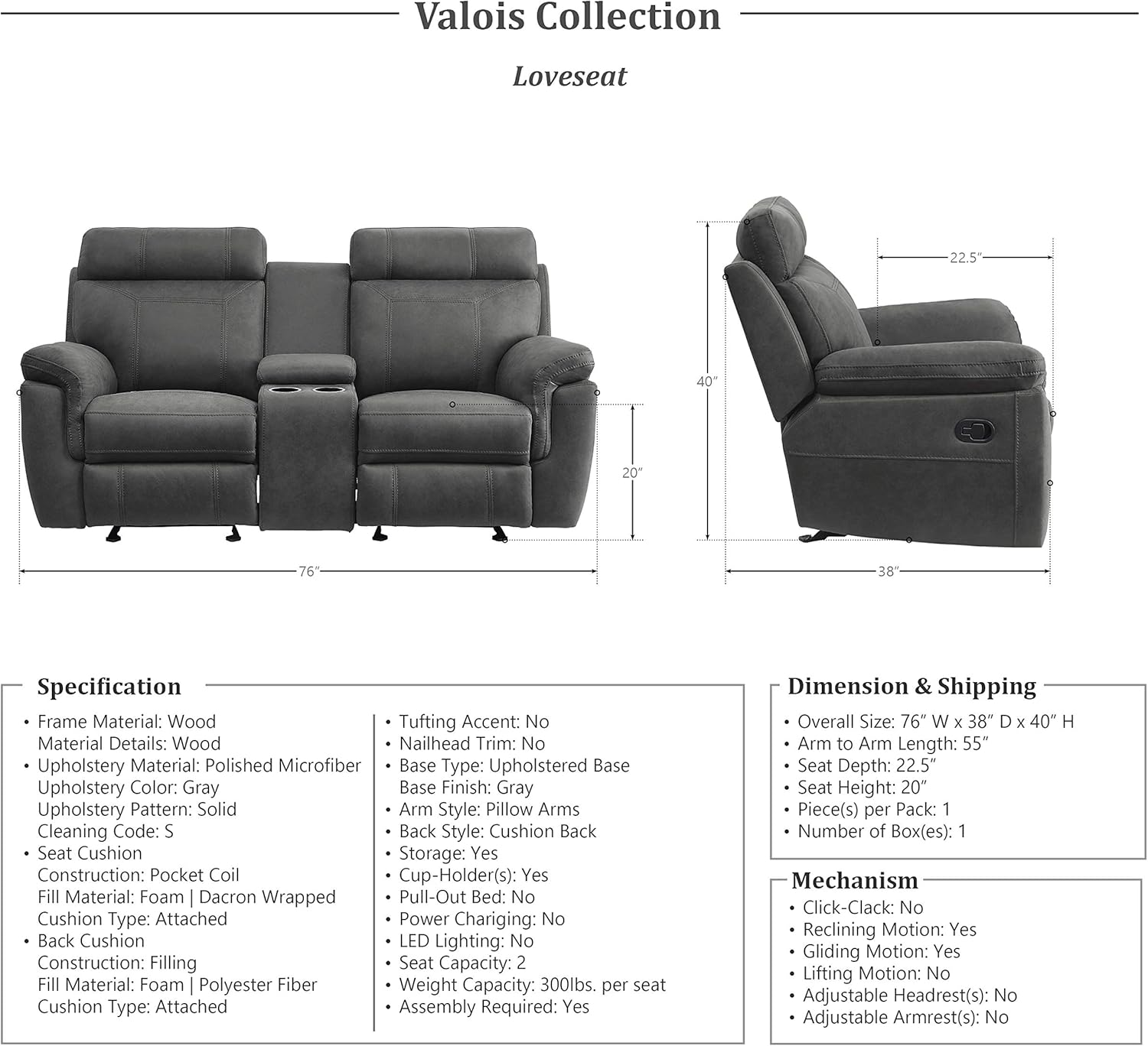 Lexicon Valois 3-Piece Reclining Living Room Set, Gray