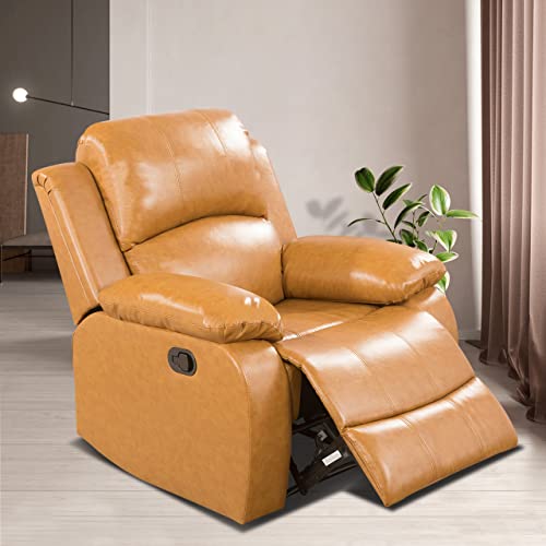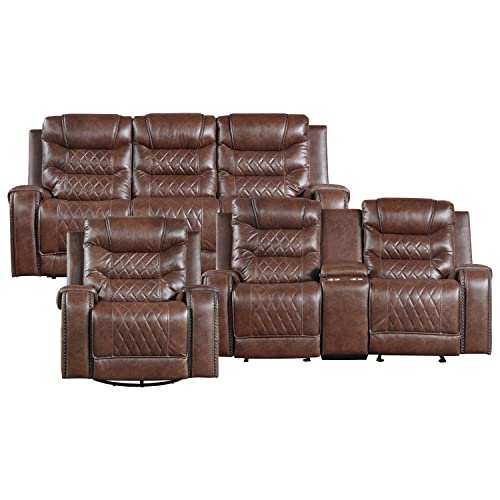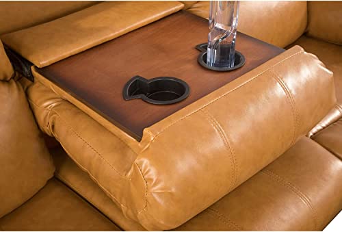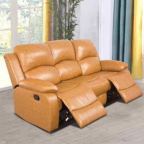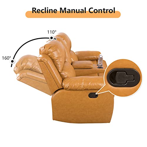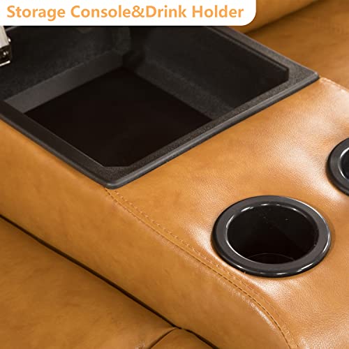 Bonded Leather Living Room Furniture Set 3 Piece Manual Recliner Sofa Set Multifunctional Reclining Couches with Cup Holders and Storage Console (Ginger)