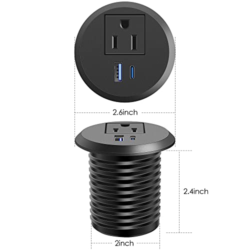 2 inch Desk Power Grommet with PD 20W USB C,Ultra-Flat Plug Power Strip,Recessed Outlet,Desktop Power Grommet for Office PC Desk Cable Cord Cover,Table Outlets for Home, Office,6 ft Cable(White)