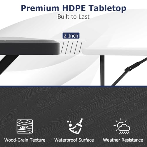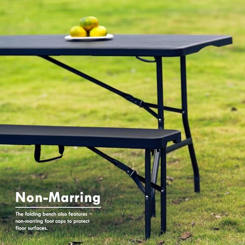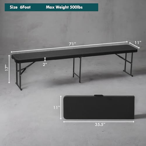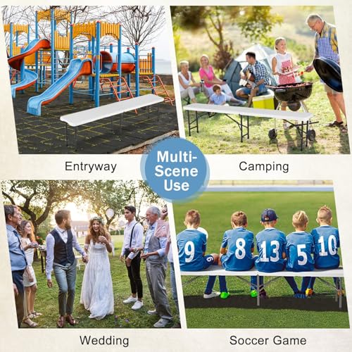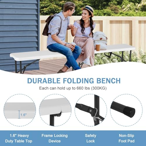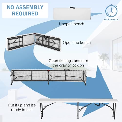 6FT Plastic Folding Bench, Portable Outdoor Bench with 440LBS Capacity, 2-Piece,Fold-in-Half Bench Seat w/Handle & Lock for Indoor Outdoor Picnic Party Dining Soccer Events (2)