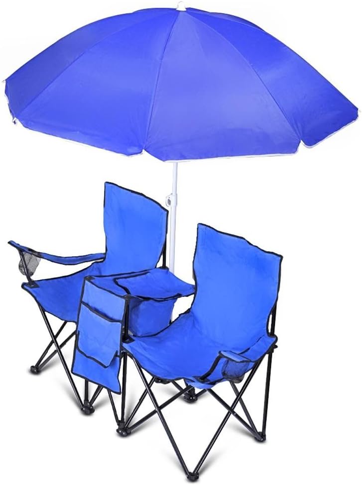 Portable Folding Picnic Double Recline Chair Umbrella Table Cooler Beach Camping Chair Stadium Seat