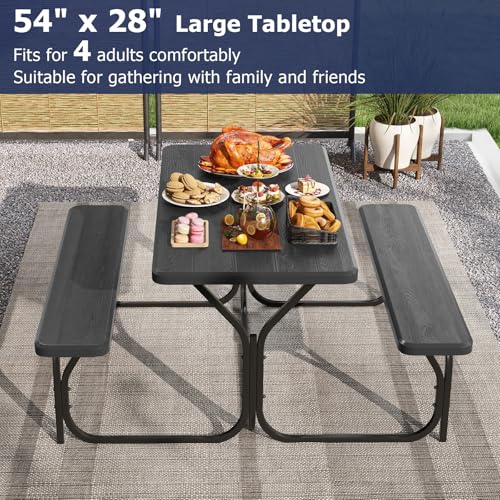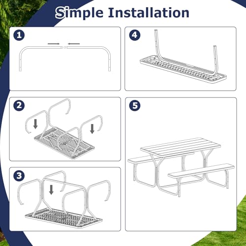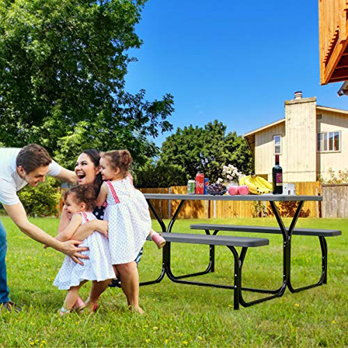 GYMAX Picnic Table, Picnic Bench Easy to Assemble w/All Weather Wood Grain Tabletop & Metal Frame, Picnic Tables for Outdoors Camping Backyard Deck Patio Poolside Dining Party