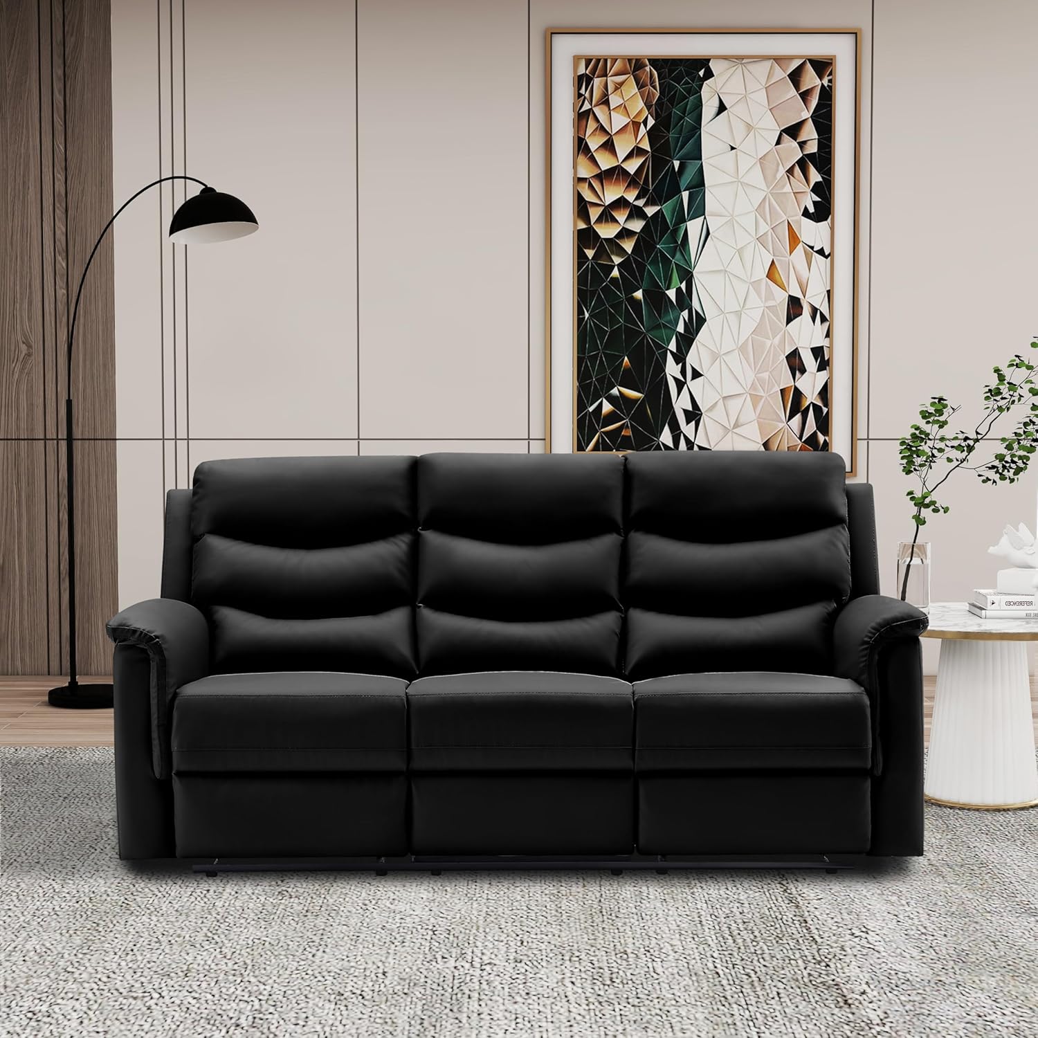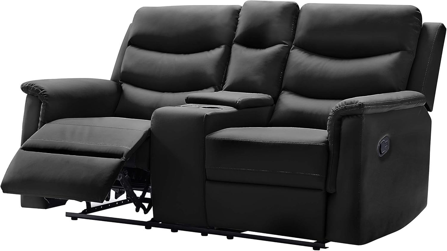 2 Pieces Faxu Leather Sofa, 3 Seater Manual Reclining Motion Couch and Loveseat with Storage Console & Cup Holders for Living Room/Office/RV Theater Seating Furniture Set, Black