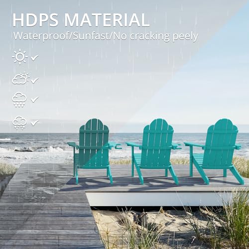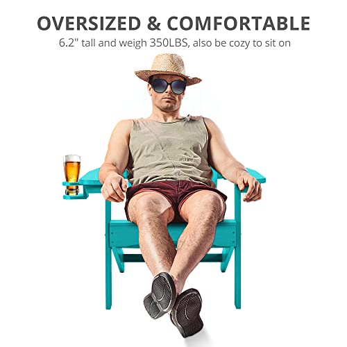 LUE BONA Poly Lumber Adirondack Chair Set of 2, Blue Adirondack Chairs with Cup Holder, 350LBS Modern Resin Patio Adirondack Chair Weather Resistant for Fire Pit, Balcony, Backyard
