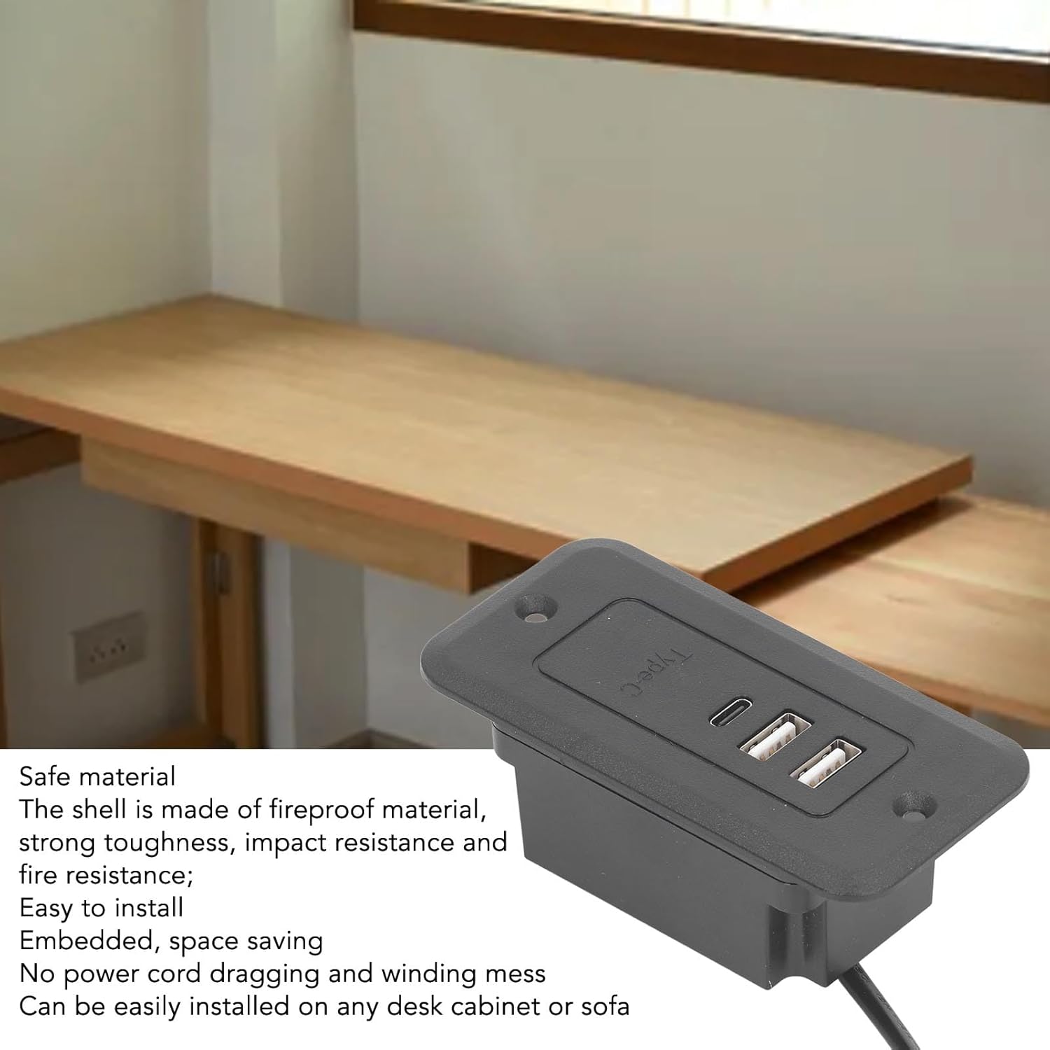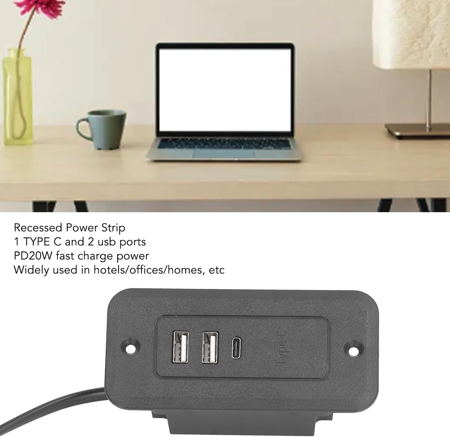 Furniture Recessed Power Strip, PD 20W Fast Charging Recessed Desk Outlet Recessed Power Outlets Socket with 2 M Power Cord for Hotel, Office, Home US Plug 110V