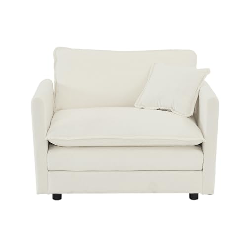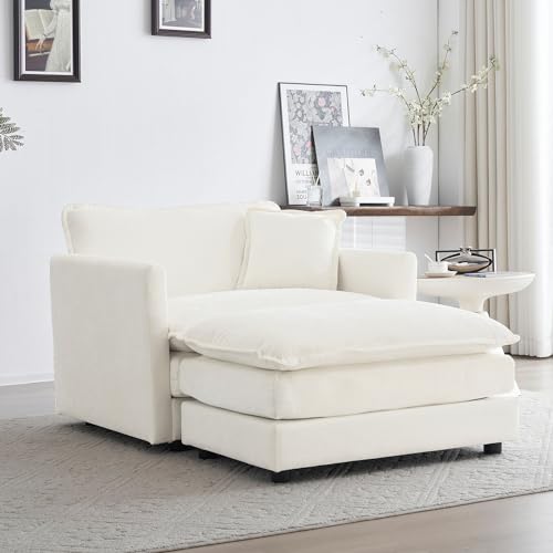 kevinplus 70'' Loveseat Sectional Sofa Couch with 2 Moveable Ottoman for Living Room, Modern Contemporary Deep Seat Sofa Couch with Toss Pillows, Chenille Fabric, Beige