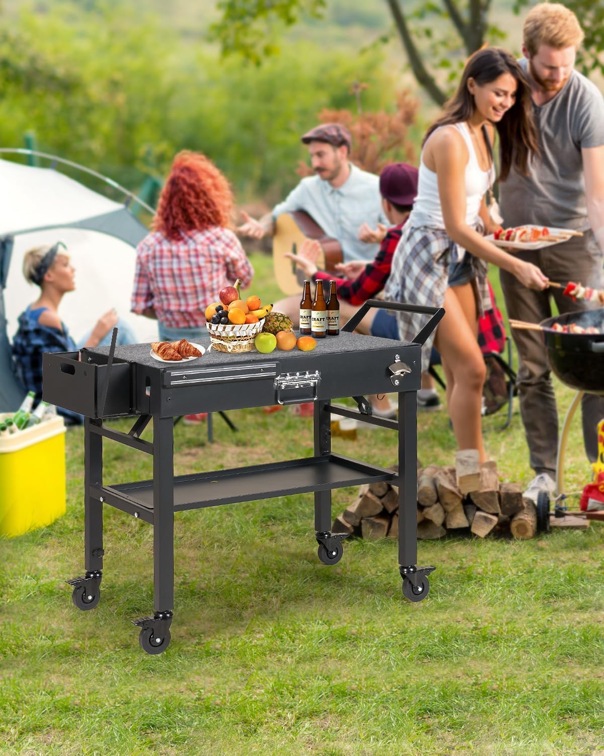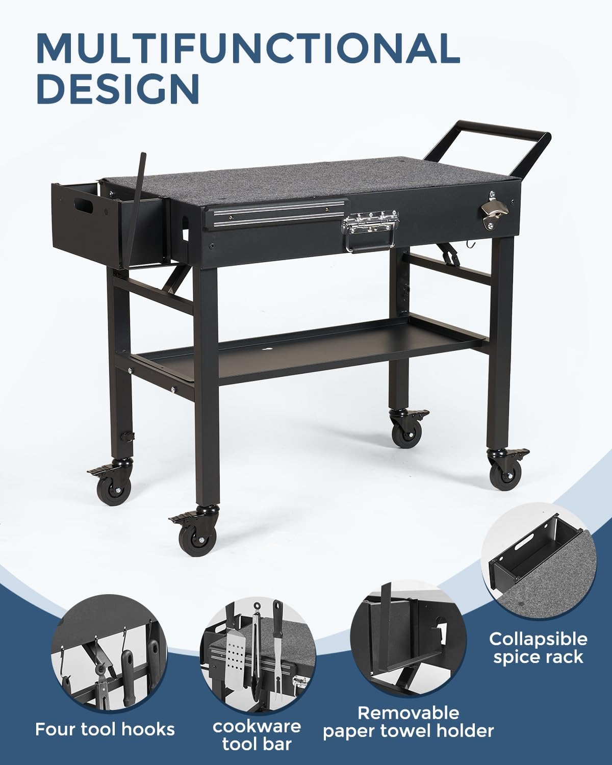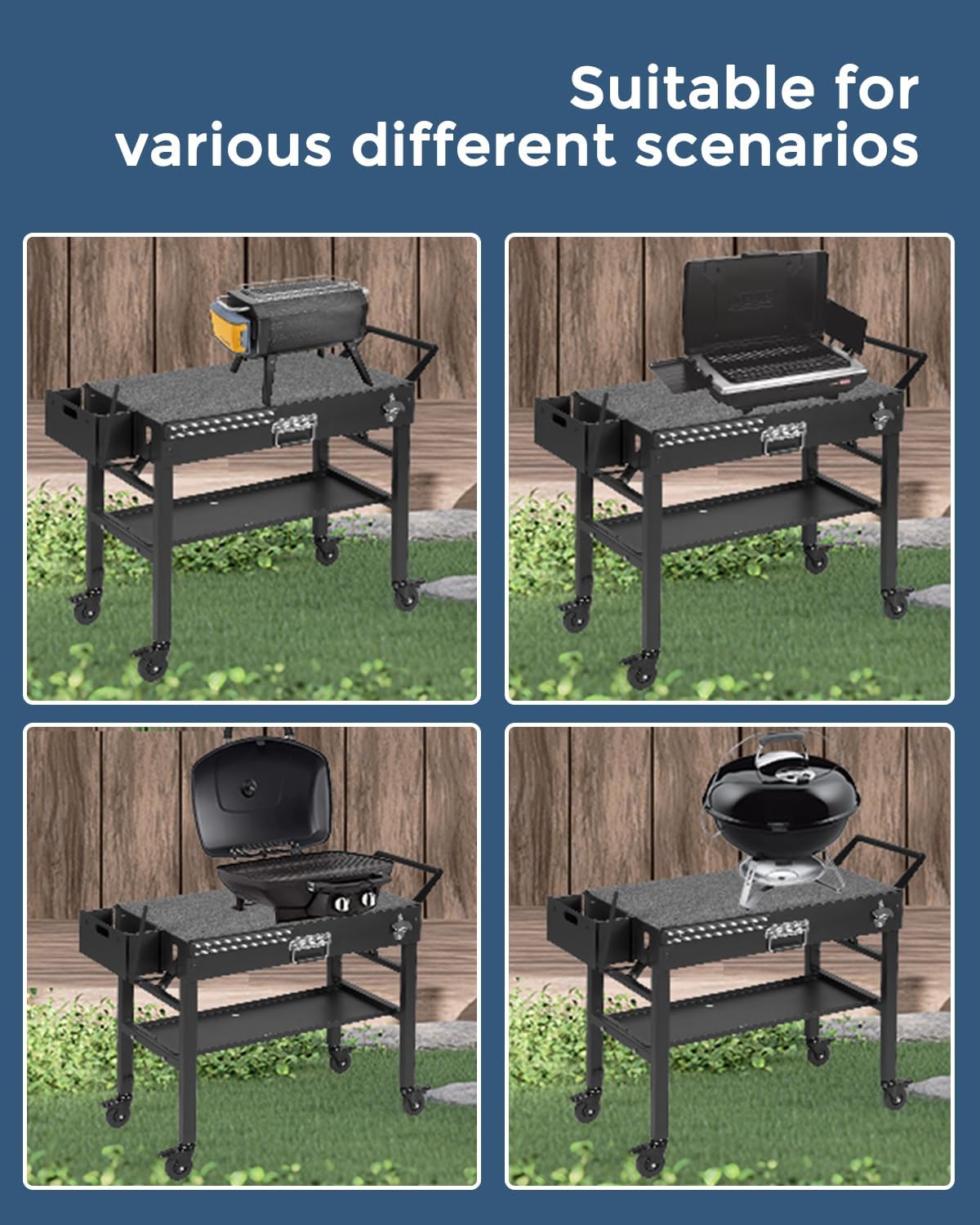 Portable Outdoor Grill Cart: Grill Tables For Outside - Fit Blackstone Griddle, Ninja Grill Stand - Outdoor Grill Table, Outdoor Food Prep And Pizza Oven Table Stand, For Cooking Camping