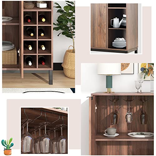 Kitchen Island with Power Outlet,Drop Leaf and Rubber Wood,Open Storage and Wine Rack,5 Wheels and Adjustable Shelves,for Home Dining Room (Grey Blue@Power Outlet)