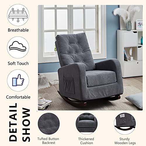Dolonm Rocking Chair Modern Glider Chair for Baby Nursery Upholstered Velvet Rocker Tufted Button High Back Accent Armchair for Living Room, Bedroom, Office (Dark Green)