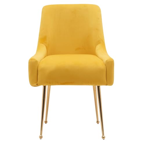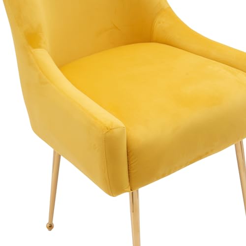 Modern Accent Dining Chairs, Velvet Home Office Desk Chairs, Tufted Vanity Chairs with Gold Metal Legs for Living Room Restaurant, Green, (Set of 2)