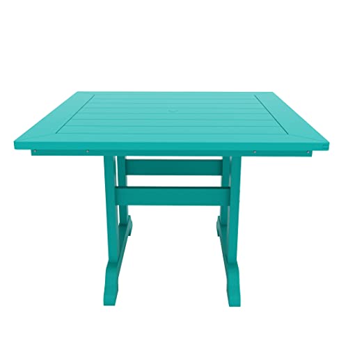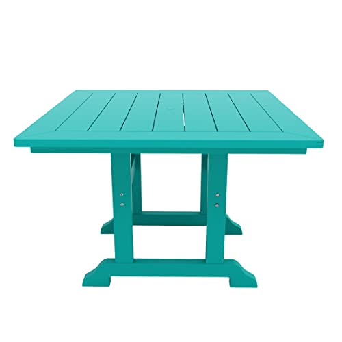 WestinTrends Malibu Outdoor Dining Table, All Weather Poly Lumber Adirondack 43" Trestle Square Patio Table with Umbrella Hole, White