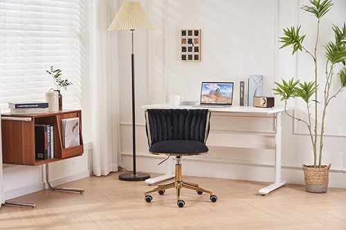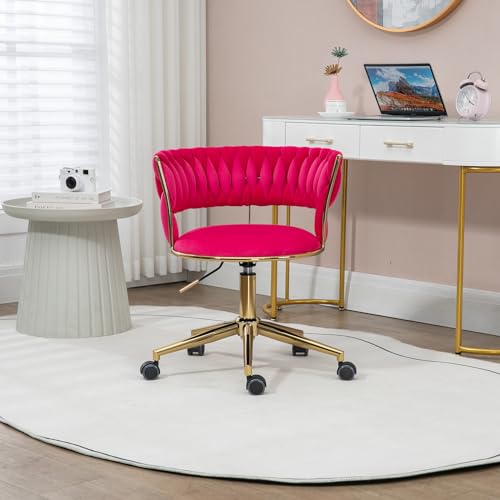 INMOZATA Office Chair Home Computer Chairs Adjustable Task Chairs Velvet Modern Office Chair Vanity Chair 360° Swivel Computer Chair Woven Back Chair Living Room Chairs Green
