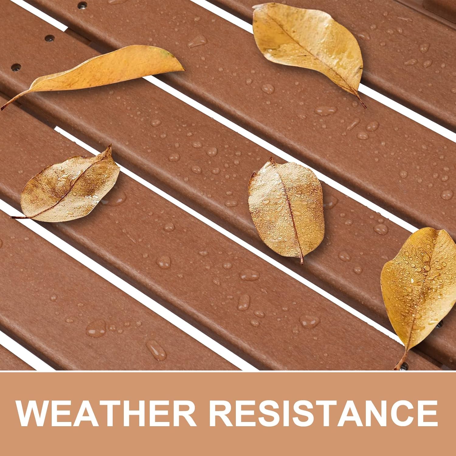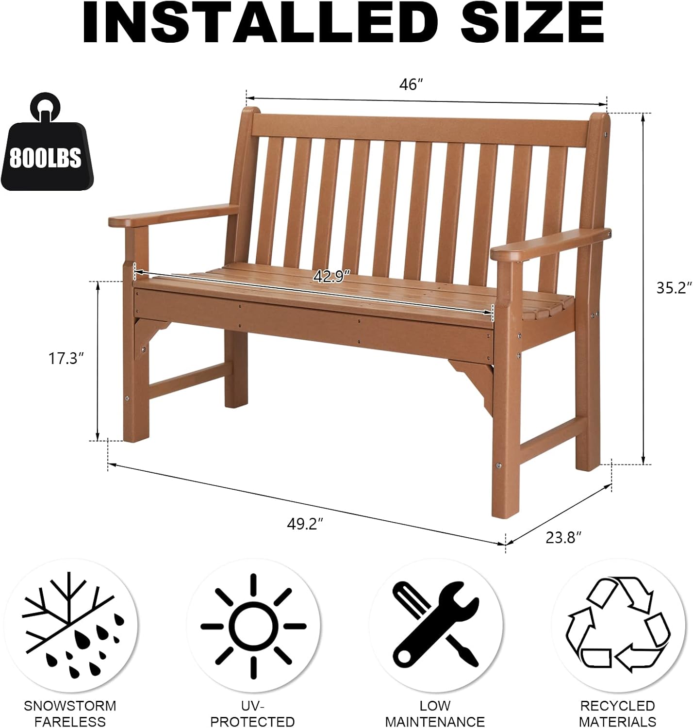 Outdoor Benches Set of 2, 2-Person Poly Lumber Garden Bench, Never Rot or Fade, Looks Like Real Wood, Teak