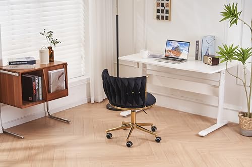Velvet Home Office Desk Chair, Swivel Task Chair with Adjustable Height, Modern Vanity Chair with Woven Back, Ergonomic Computer Armchair for Living Room, Bedroom, Home Office, Olive