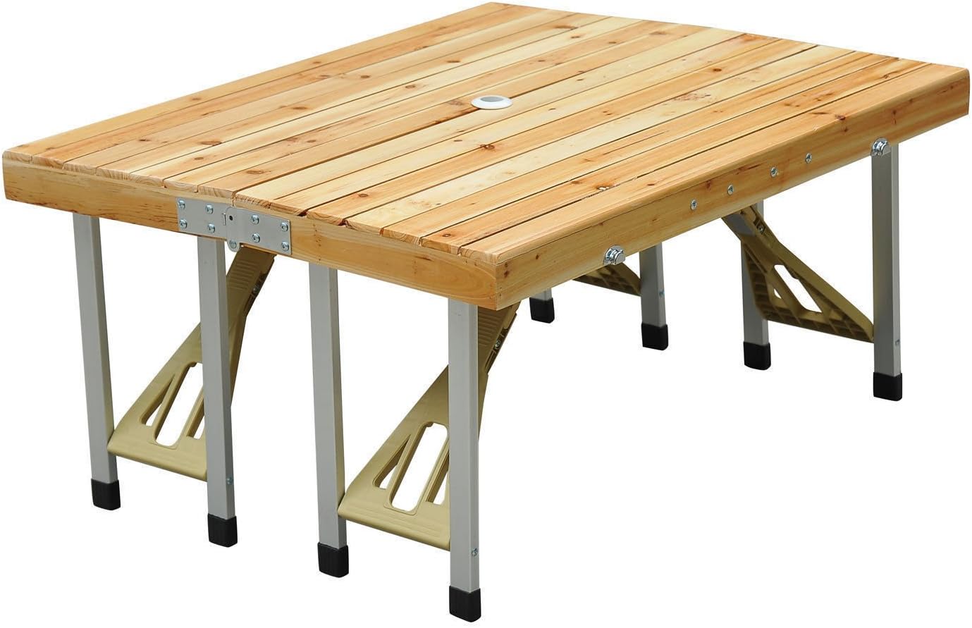 Allblessings 4 Seats Wooden Picnic Table Bench Seat Outdoor Folding Camping Aluminum Portable