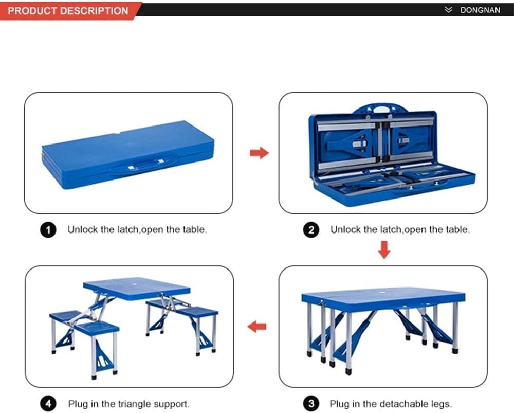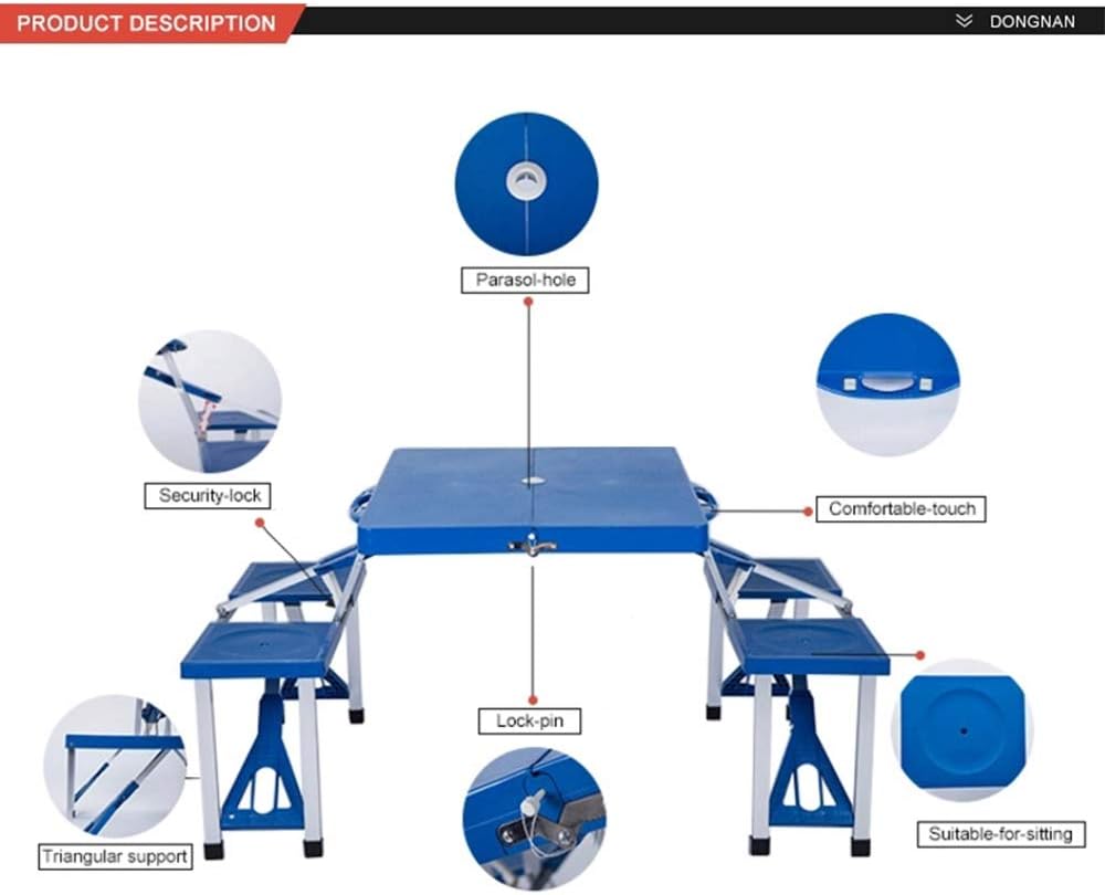 Outdoor Portable Folding Picnic Siamese Table and Chairs Set 4-Person Picnic Folding Table 4 Seats Indoor Suitcase Table Hole with Parasol for Indoor Outdoor Travel Camping