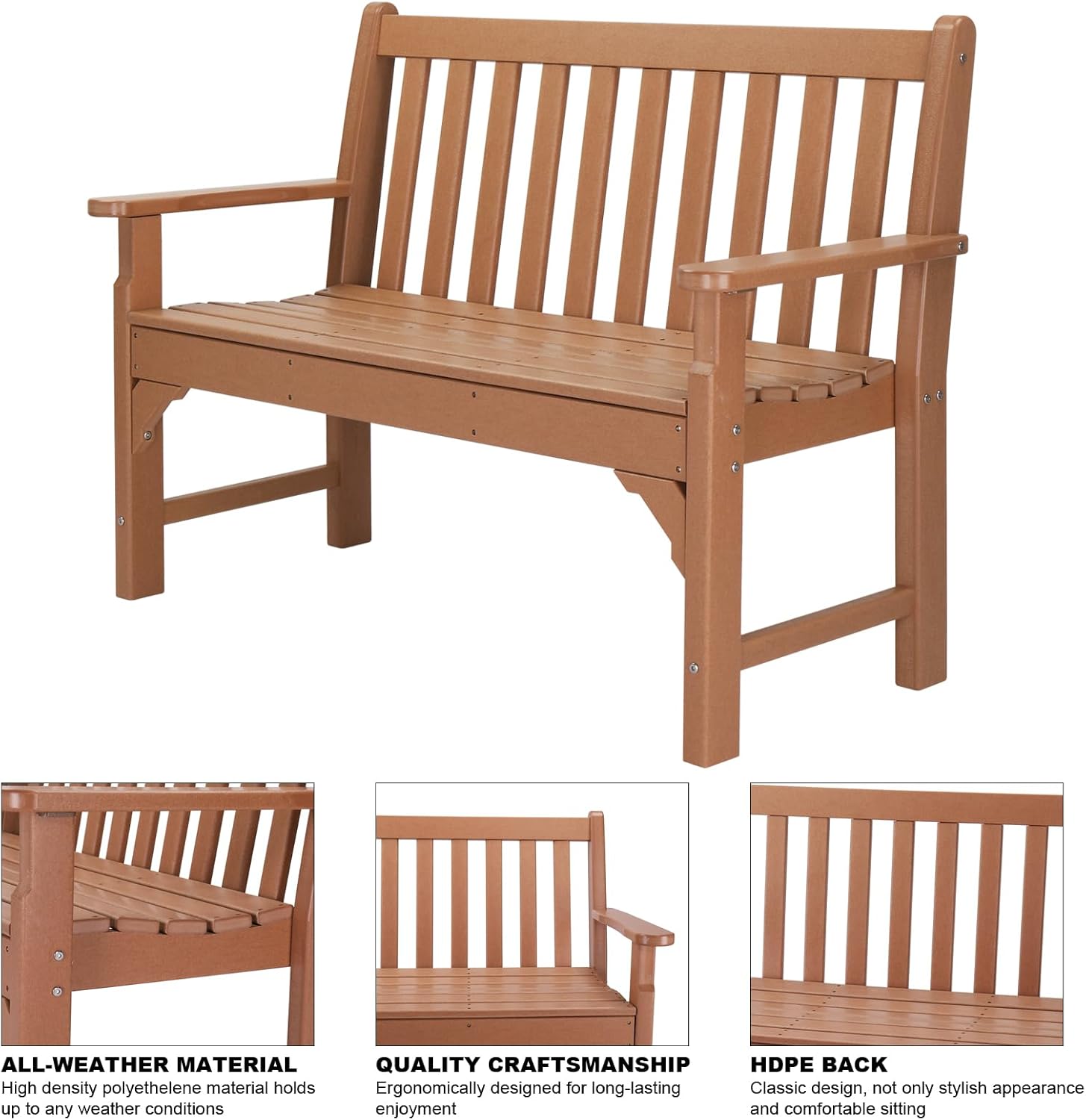 VINGLI Outdoor Bench Garden Bench Waterproof HDPE Porch Bench, Poly Lumber Patio Bench with 800 lbs Weight Capacity, Rot-Proof Fade Proof