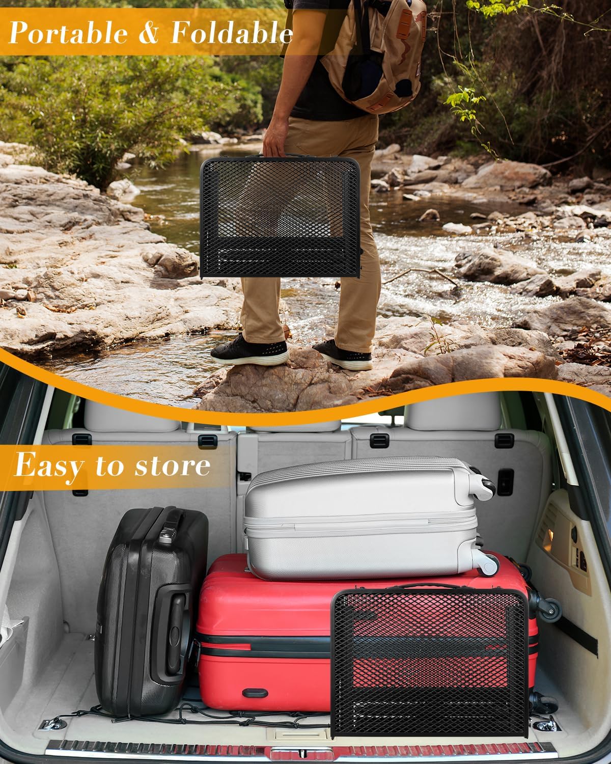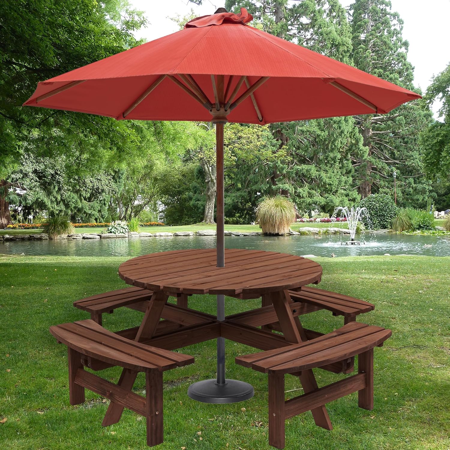 5-Piece Portable Picnic Table Bench Set w/ 4 Built-in Benches, 8-Person Beer Table with Seating, Wooden Garden Bench for Outdoors Patio Deck Party BBQ,2220lb Capacity