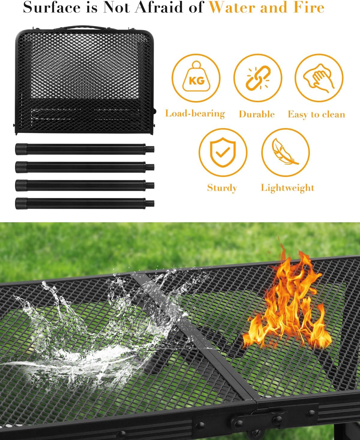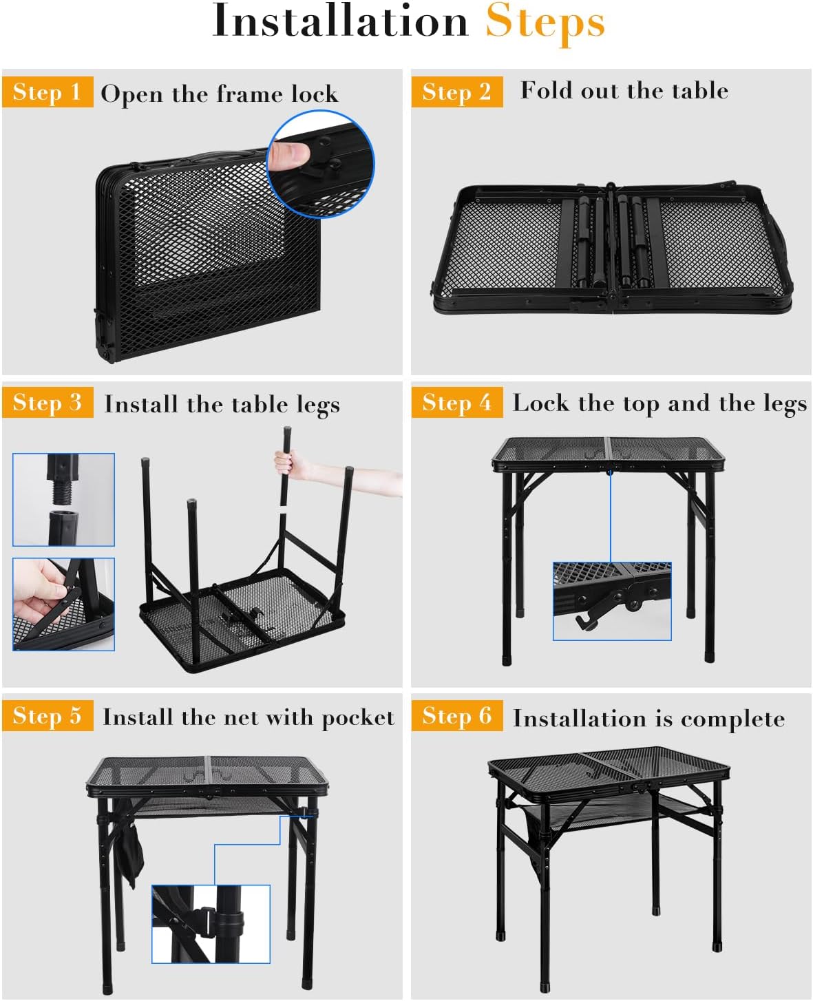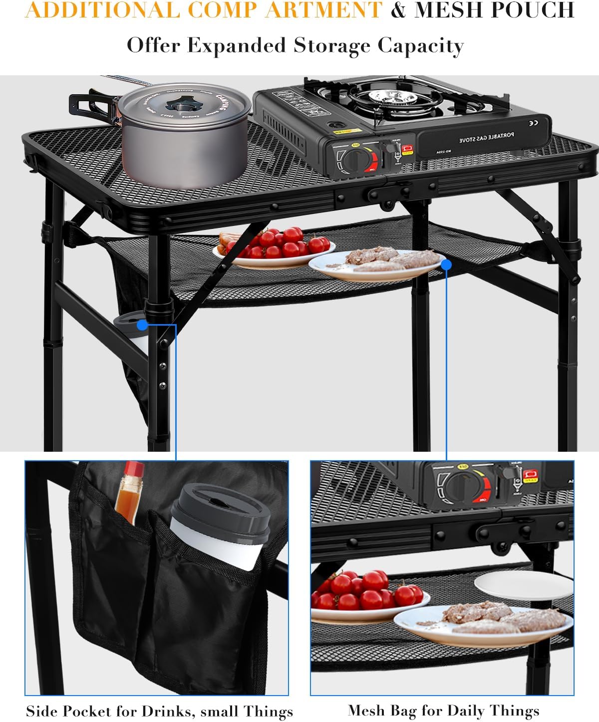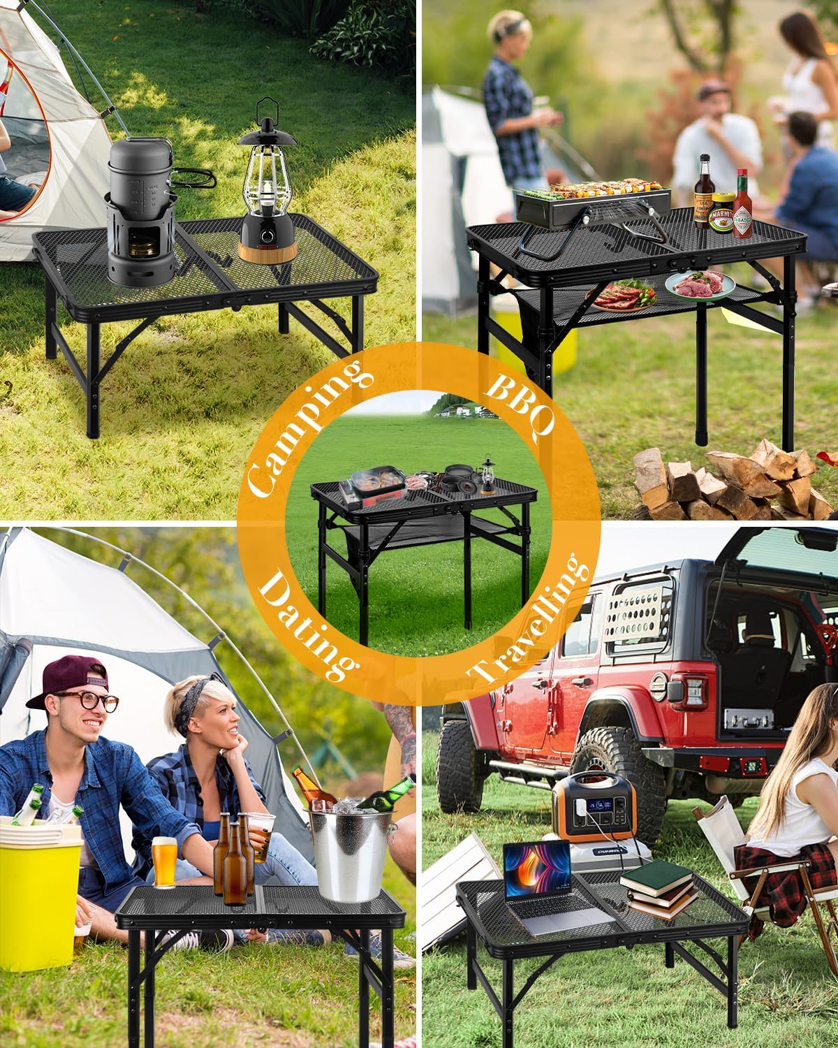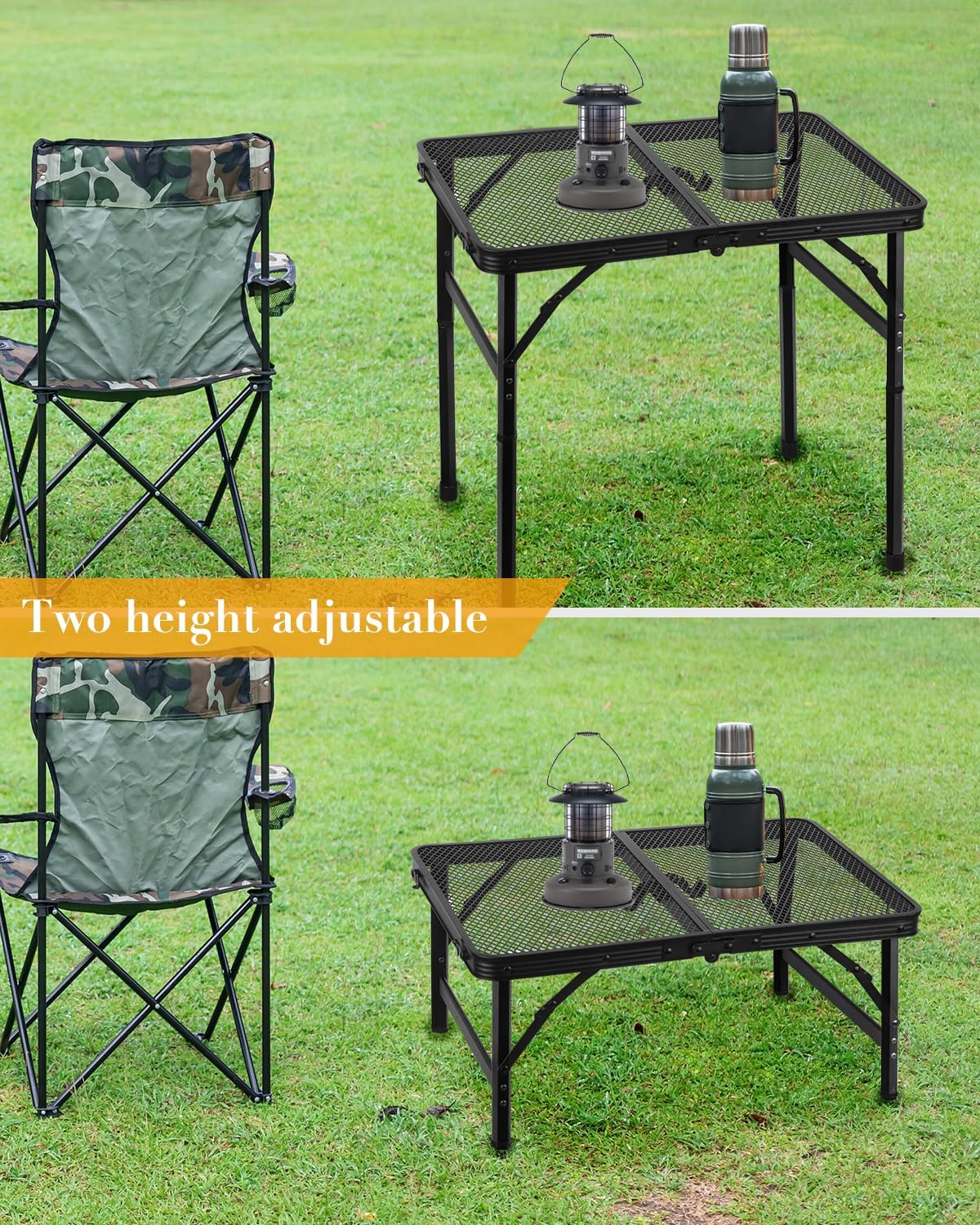 Small Folding Grill Table, Height Adjustable Aluminum Outdoor Table, Portable Picnic Table for Outdoor Camping, Picnic, Patio, Dining, BBQ, Party, 23.6×15.7 inch