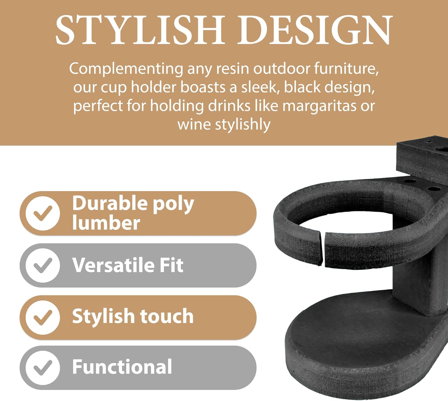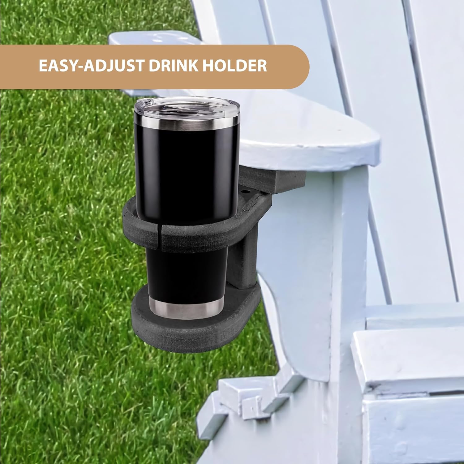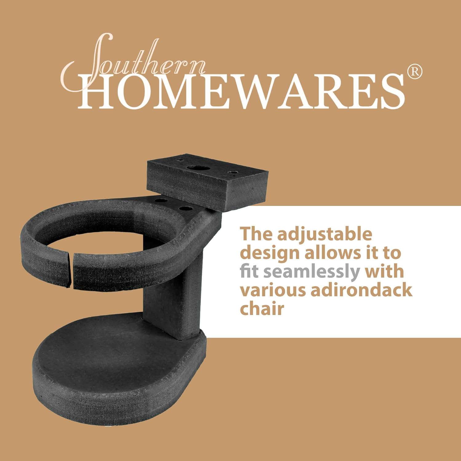 Southern Homewares Adirondack Chair Cup Holder Attachment, Durable Poly Lumber, Adjustable, Ideal for Your Polywood Outdoor Furniture, Black