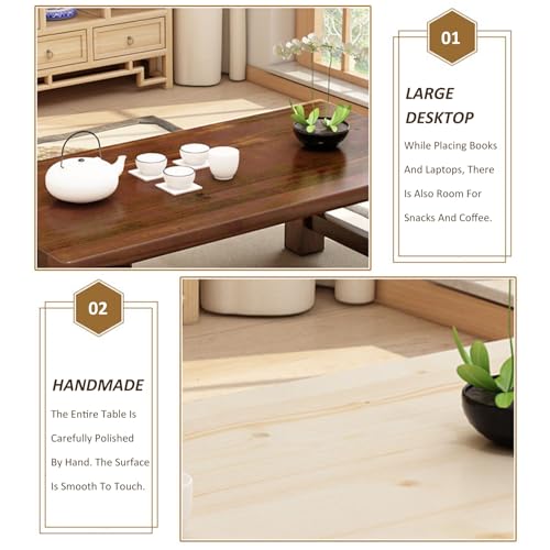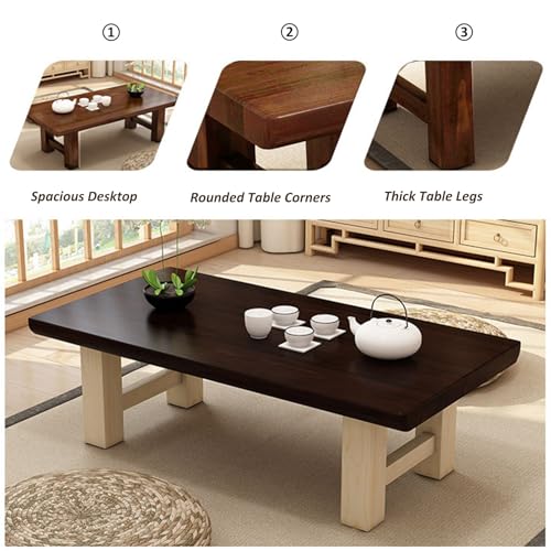 Japanese Style Solid Wood Coffee Table, Wooden Tatami Table, Zen Low Table, Long Floor Table, Balcony Tea Table with Waterproof Tabletop and Sturdy Legs (Color : B, Size : 80x50x38cm)