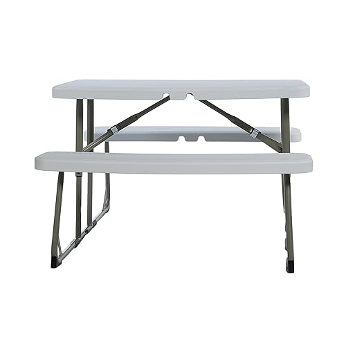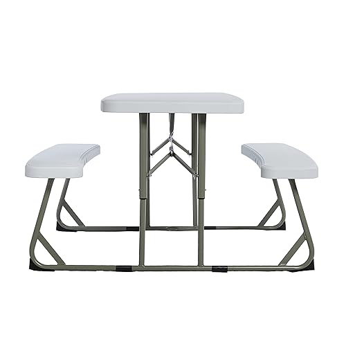 BizChair Easy-Fold Kids Outdoor Picnic Table and Benches - Commercial Grade Folding Plastic Play Table - Recommended for up to Age 5 - White