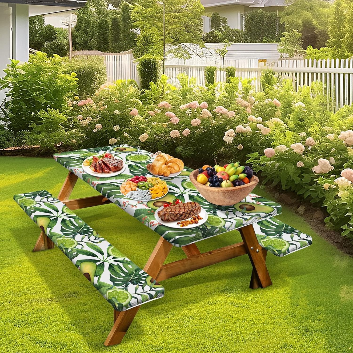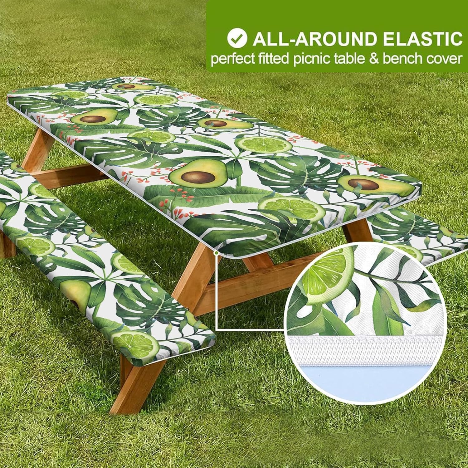 Elastic Bench Covers - 3 Dining Covers, Outdoor Table Cloth | Windproof Picnic Chairs Fitted Tablecloth, Avocado Printed Portable Camping Table Guard for Outdoor Painting Picnics Parties