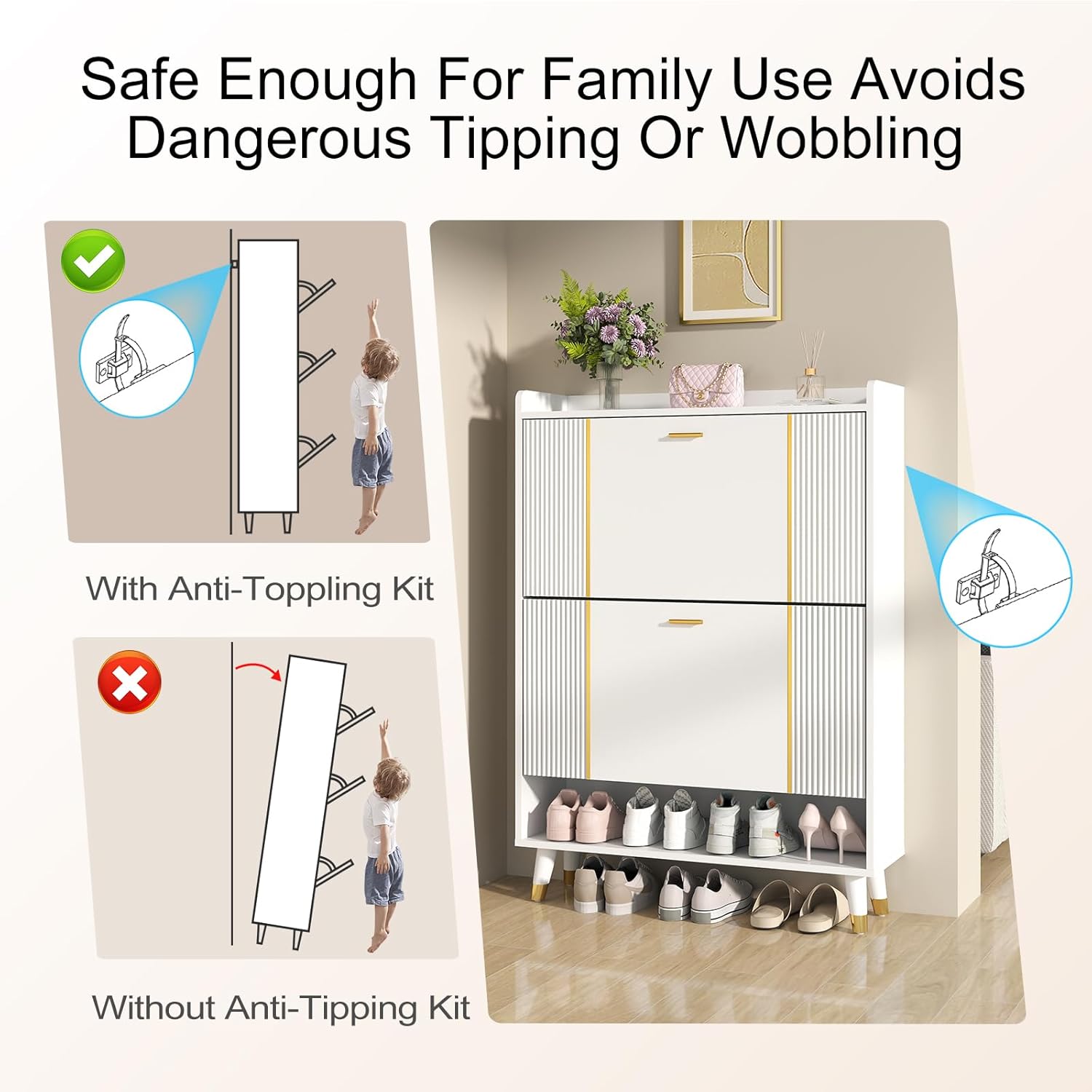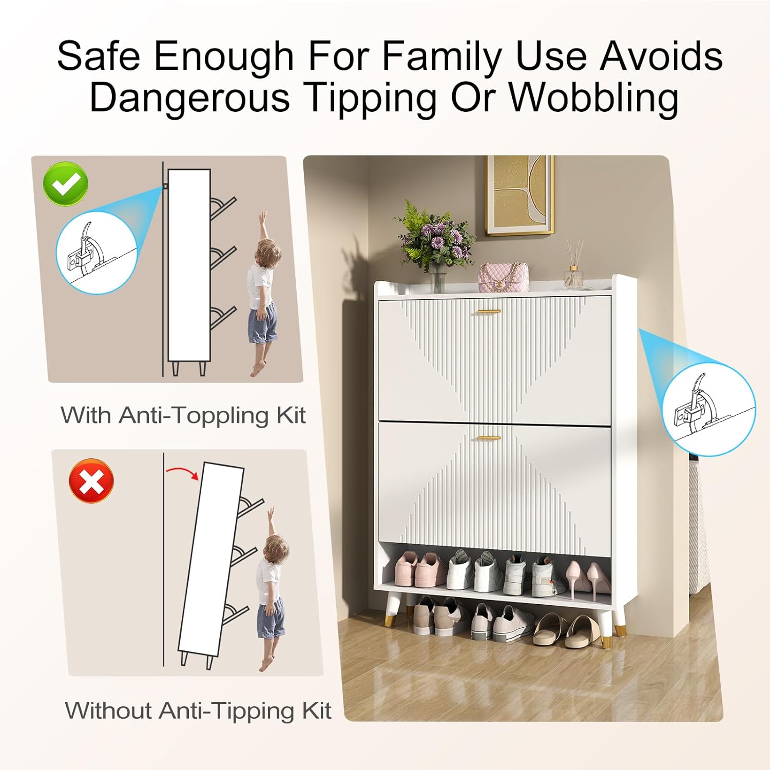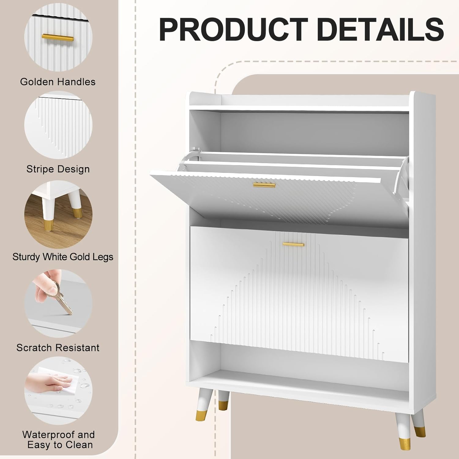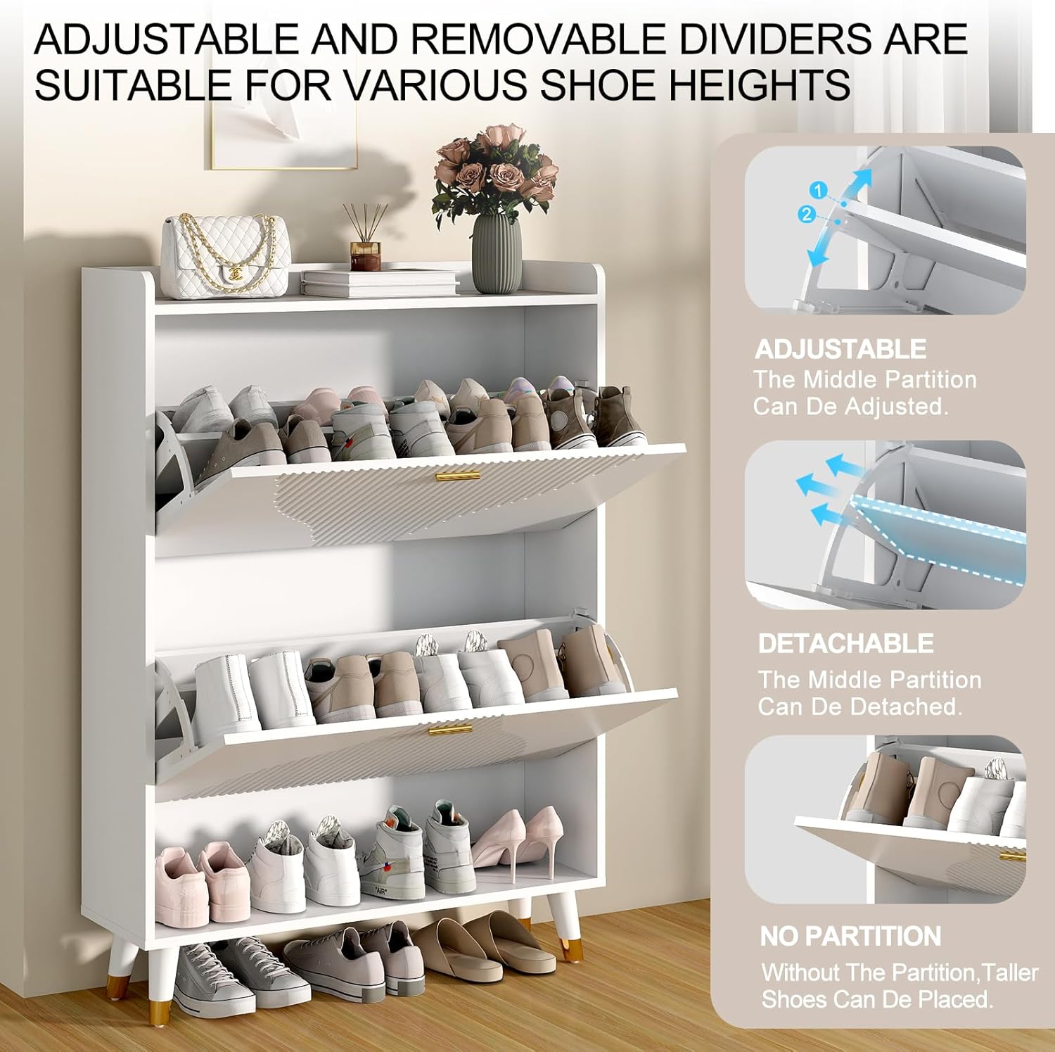 White Shoe Storage Cabinet for Entryway Slim, Hidden Wooden Shoe Organizer Cabinet with Drawer, Ultra Shoe Rack Cabinet for Front Door Entrance