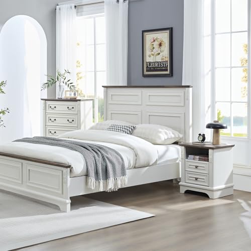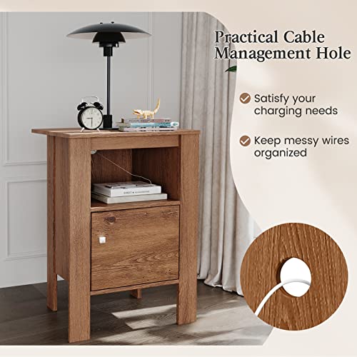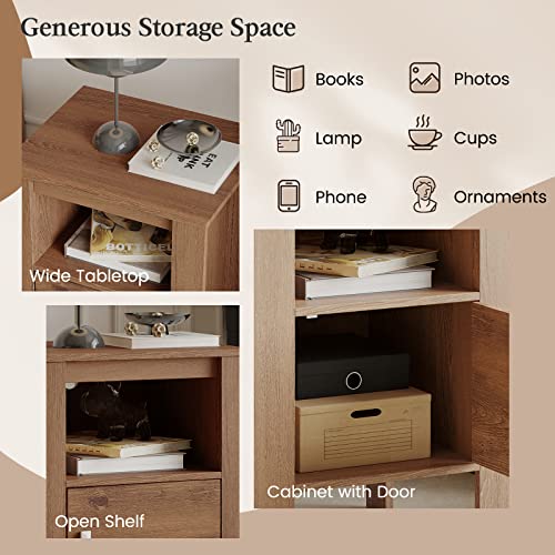 Giantex Farmhouse Nightstand, Bedside Table w/Open Shelf & Cabinet, Compact Floor Night Table w/Cable Management Hole, Wooden Accent End Table Side Table for Bedroom, Grey Oak