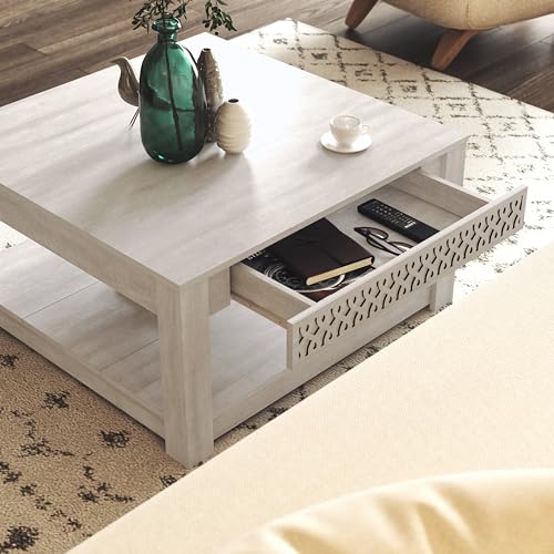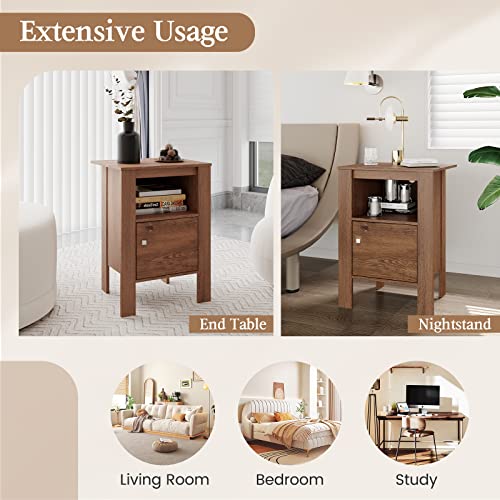 Galano Doyle End Table - Bedside Tables for Bedroom - Small End Table - Sofa Side Table - Drawer Glides - Easy Assembly - Knotty Oak