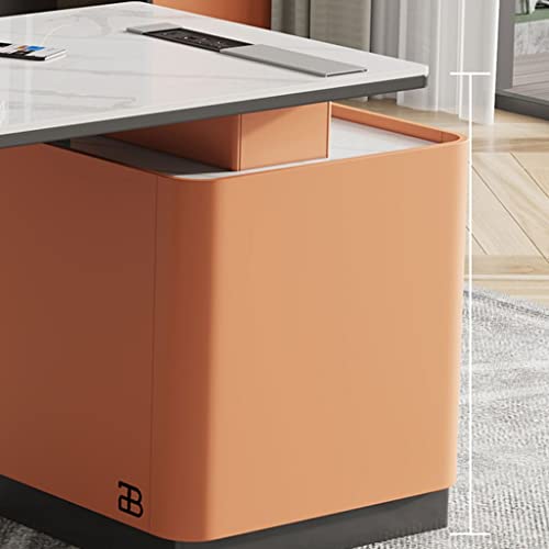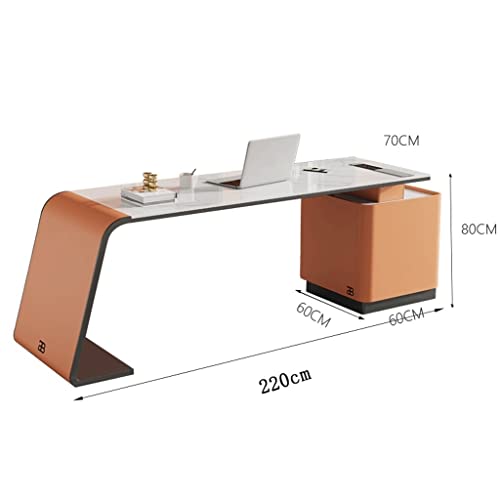 Work Desk Orange Slate Desk Floor Mount Home Writing Desk Modern Desk 70 to 86 Inch Main Cabinet with 3 Drawers and Hidden Desktop Computer Computer Desk(A,220cm)