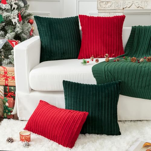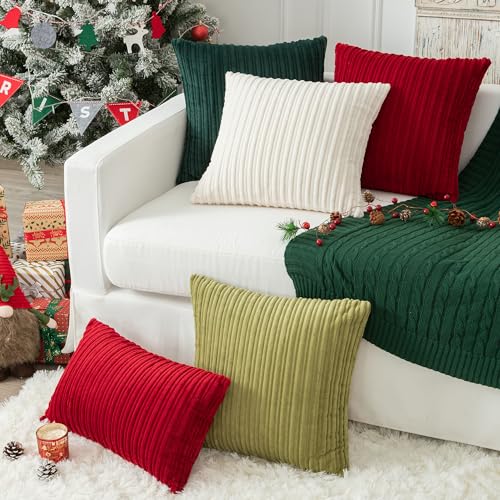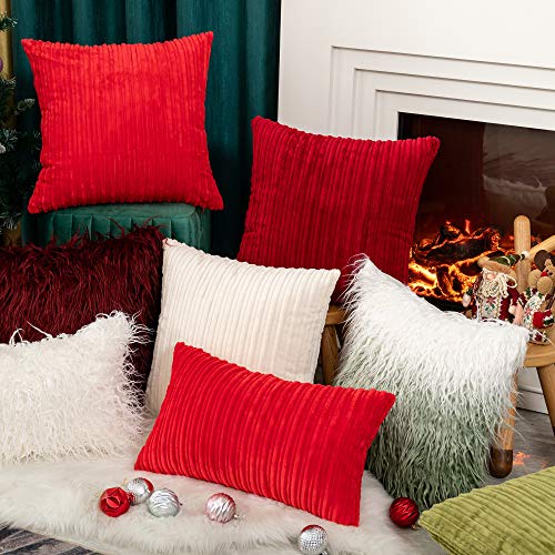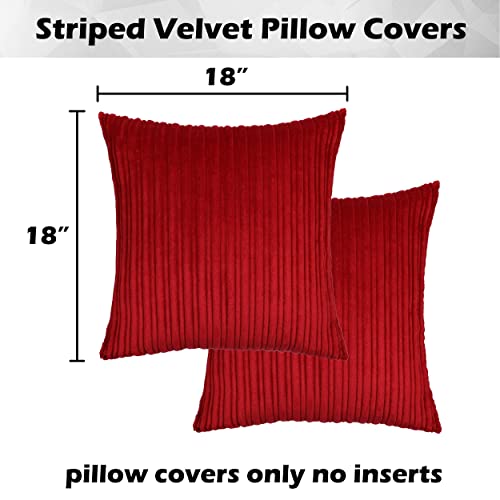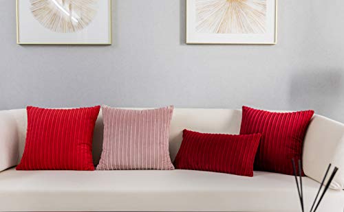 Kevin Textile Throw Pillow Covers Soft Corduroy Decorative Set of 2 Boho Striped Pillow Covers Pillowcases Farmhouse Home Decor for Couch Bed Sofa Living Room 18x18 Inch Beige